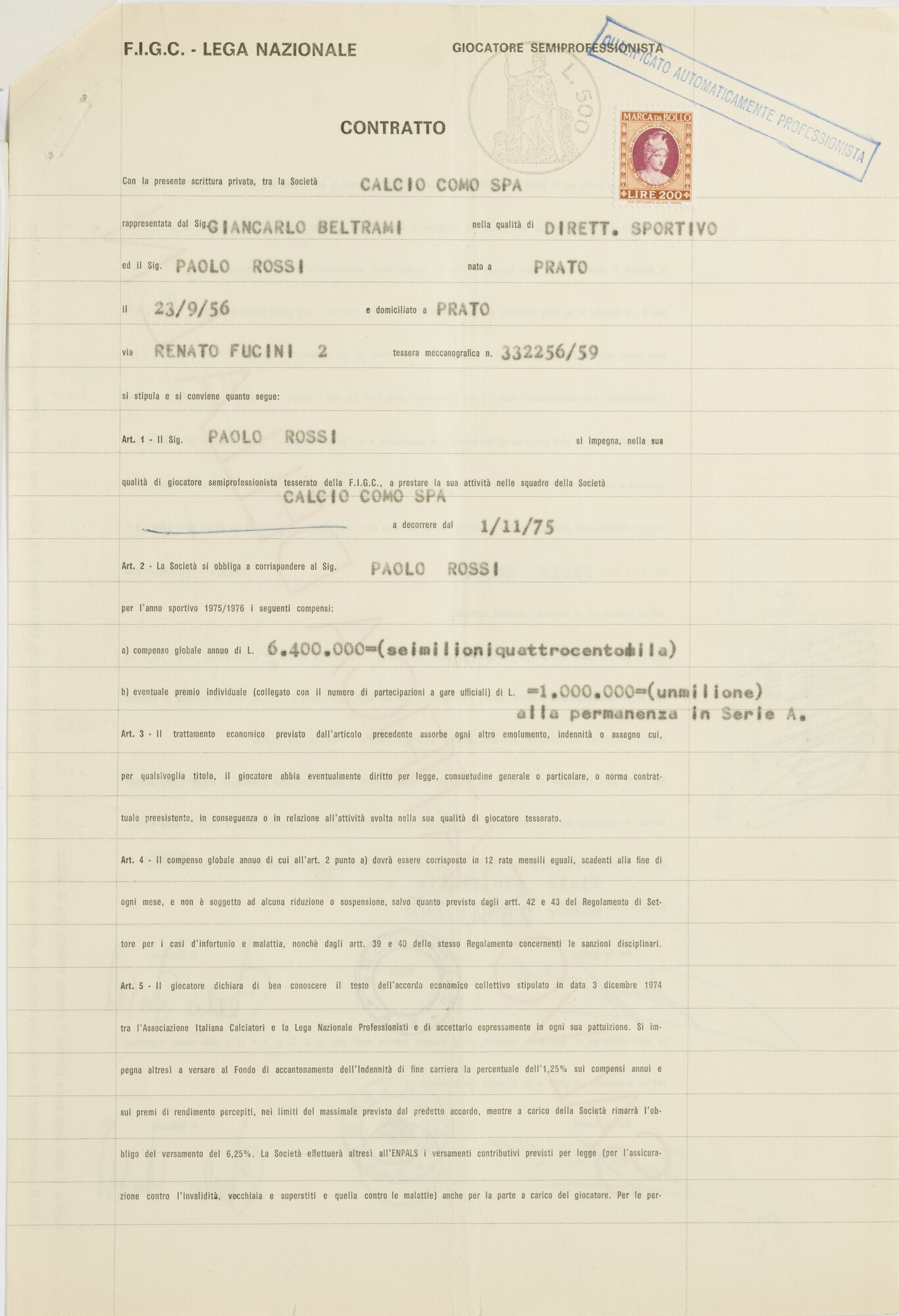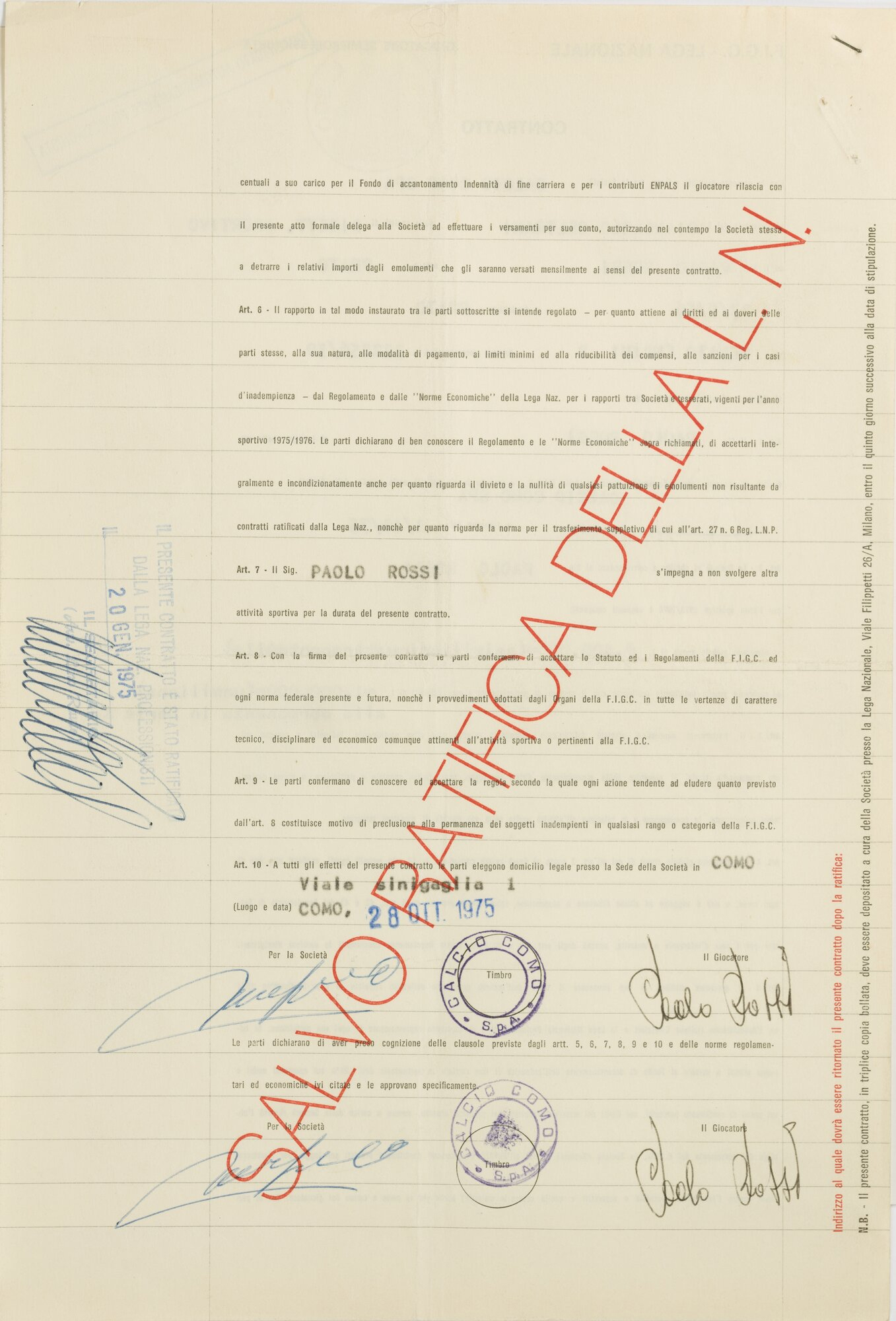 CONTRATTO COMO 1975/1976